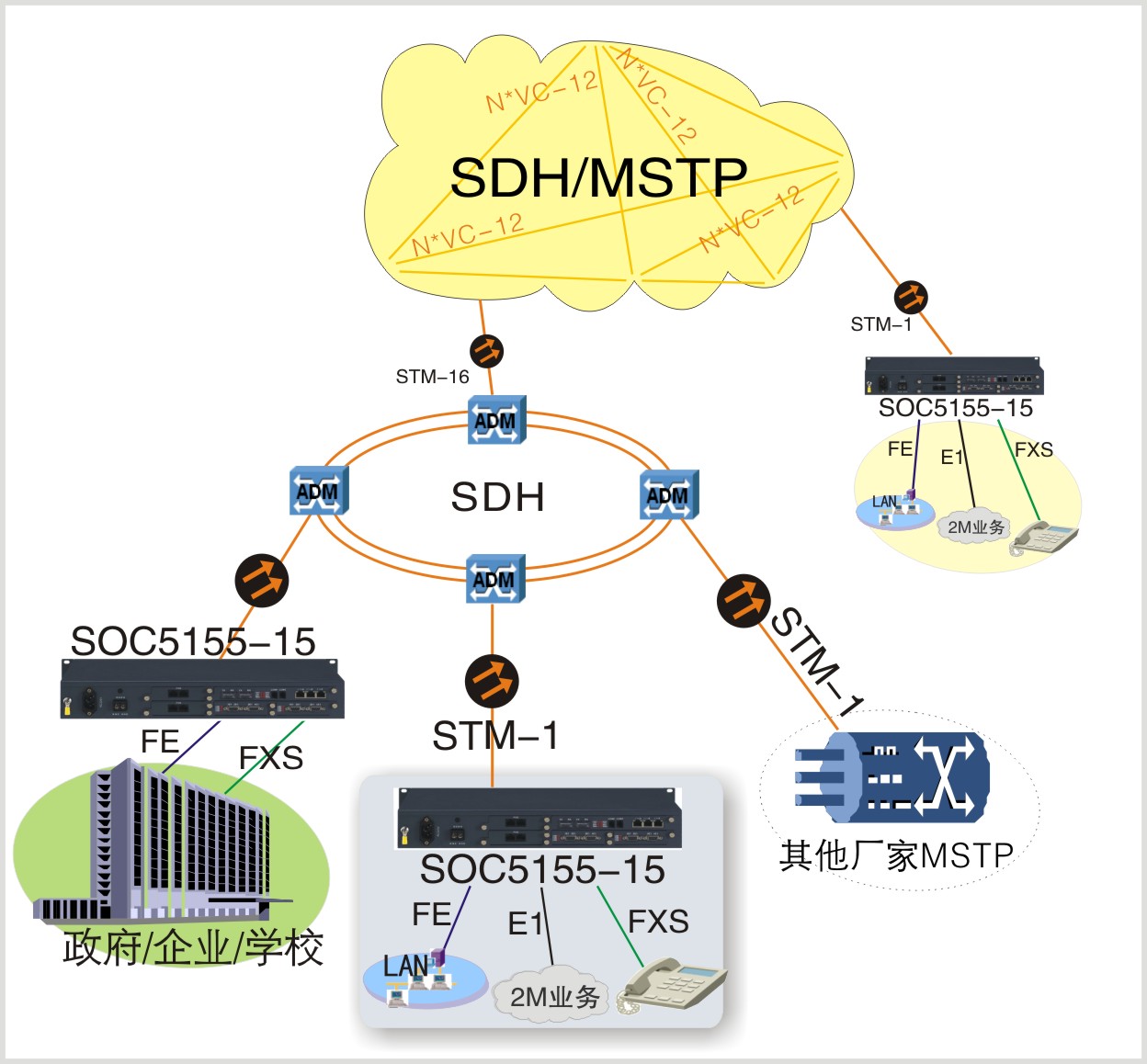 SOC5000-10E系列復(fù)用設(shè)備是在SOC-G08系列臺式多業(yè)務(wù)光端機(jī)的基礎(chǔ)上,增加了網(wǎng)口數(shù)量。此系列產(chǎn)品主要提供4/8個E1,1至4路帶寬100M網(wǎng)口,1路異步數(shù)據(jù),4/8路語音,專為語音和數(shù)據(jù)接入及專網(wǎng)組網(wǎng)建設(shè)而開發(fā)設(shè)計的綜合業(yè)務(wù)傳輸產(chǎn)品,還能附加上其它業(yè)務(wù),比如:2/4線音頻、磁石通道、E&M通道等.采用標(biāo)準(zhǔn)19英寸1U機(jī)箱,雙電源供電,滿足專網(wǎng)建設(shè)中2M、以太網(wǎng)、語音和異步數(shù)據(jù)等綜合業(yè)務(wù)的接入和傳輸。